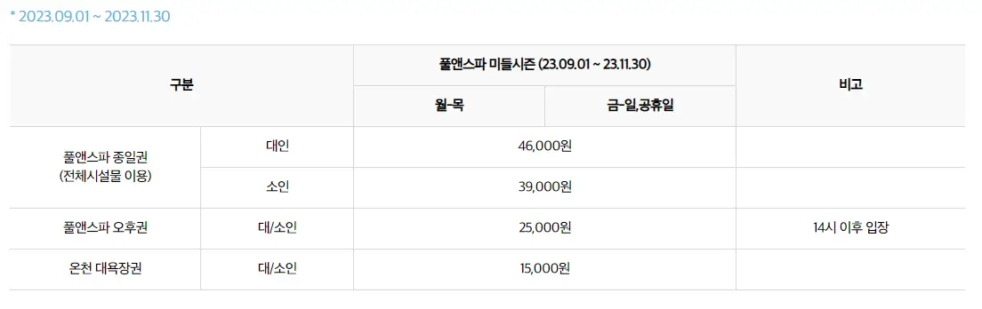 - 문의전화 : 031-645-2000(스파), 031-645-2001(숙박), 031-645-2002(단체)
