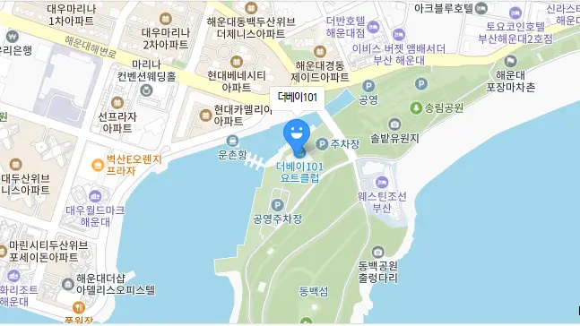 국내 최고 수준의 해양레저시설을 자랑하는 더 베이 101은 해운데 동백섬에 위치해 있습니다. (주) 동백섬마리나가 총 350억원을 들여 2014년 4월에 준공하였으며, 최종적으로 2014년 5월 14일 그랜드오픈을 햐였습니다.