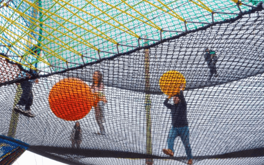탄탄한 그물 네트 위에서 쿵쿵 발을 구르면서 ‘위아래 위위아래’ 오르락내리락하는 모습이 마치 축제의 하이라이트 장면처럼 푸른 하늘에 폭죽이 팡팡 터지는 것처럼 느껴집니다.