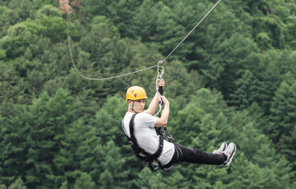 칼봉산 자락에 자리한 가평 ‘브릿지짚라인’은 전체 길이 2,418m로 코스형 집라인으로는 국내 최장 길이를 자랑합니다. 총 8개 코스의 집 라인을 타는 체험을 할 수 있습니다.