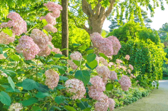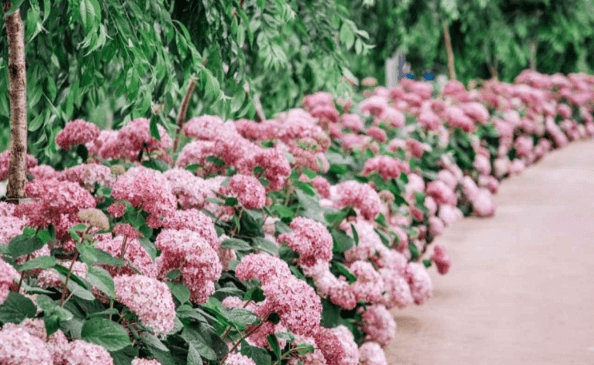 푸른 잎사귀를 포근히 감싸고 있는 꽃잎이 예술인 ‘산수국’, 나무를 형성하여 강인하면서도 여린 순백의 매력을 뽐내는 ‘목수국’ 소복하고 자그마한 눈사람이 떠오르는 ‘미국수국’, 조밀한 꽃들이 모여 한 송이 부케와 같은 ‘큰잎수국’ 등 다채롭게 푸른빛의 신비로움을 자아내는 수국들이 저마다의 아름다움을 뽐내어 여름 여행의 인생 사잔을 남길 수 있습니다.